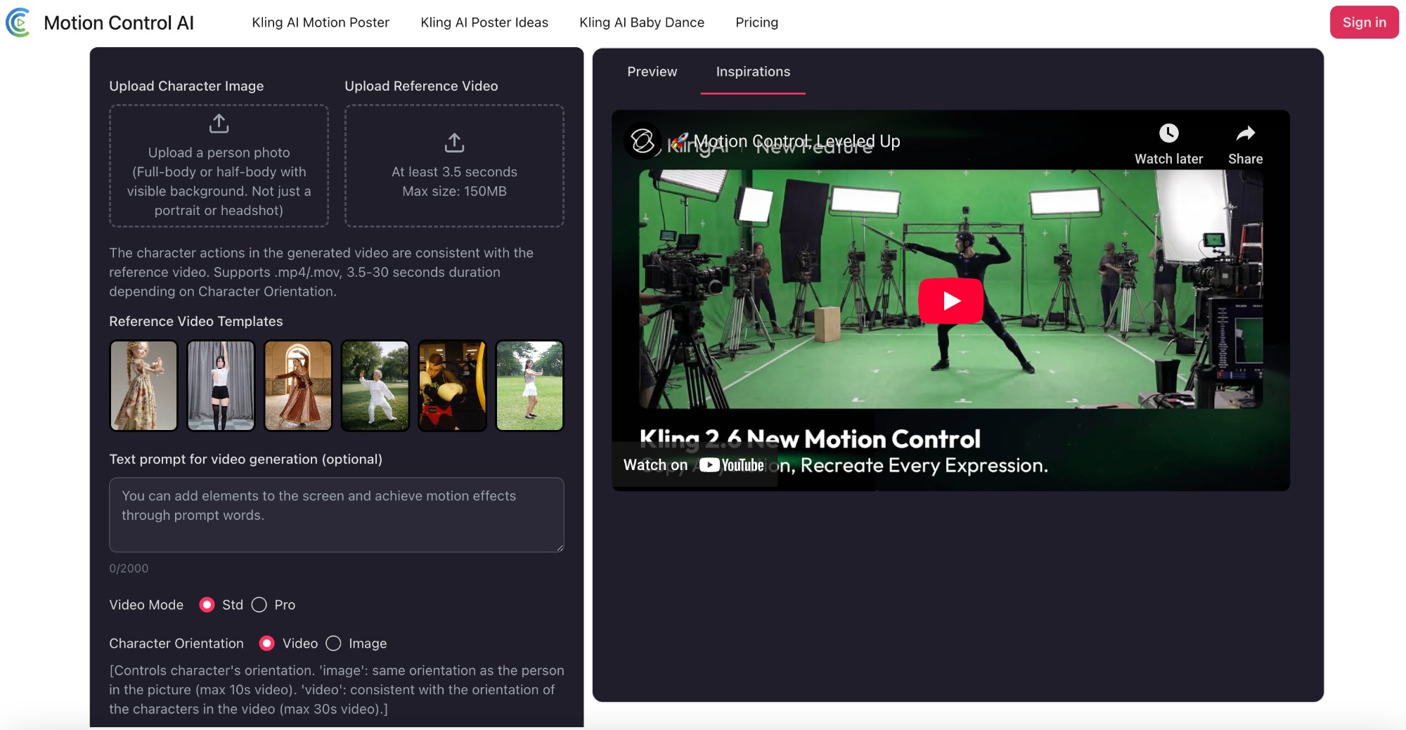 - Motion Reference: Upload the video clip that defines the movement.